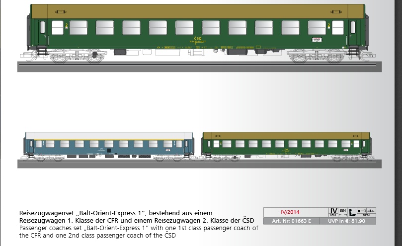 Od Tilliga mě snad poprvé zaujal hektor, a docela o něm i uvažuji, ale dokud neuvidím neobjednám. Stejné pocity mám i z 455.2, celkově se mi i líbí, ale zatím je to jen jakási fotomontáž, takže si počkám. Ani jeden není z těch modelů, co kdyby mi utekly, tak mi to bude vadit, takže vklídku risknu, že se na mě nedostane. Z hlediska vozů je to letos bída, kdyby aspoň ten Talbot (podobně jako pro DR a DB) udělali, ale takhle. Staré formy na 6 vozů a za 100€, no vzhledem k tomu, že většinu z nich už mám z minulosti nebo přestříkané, případně pro ně mám připravené obtisky, nějak mě to nevzrušuje. Stejně tak si nedělám vrásky kolem patráků, až uvidím fotky, tak mě Tillig buď překvapí a nadchne, pak je koupím, ale jinak čekám na Arnolda a budu překopávat a přeznačovat. A co se limitky pro Balt-Orient týče, tak je to sice pěkné, mám ještě 2 měsíce na rozmýšlení, ale nevím jestli bych uživil ten Rumunský vůz a taky jsem si jasně rozdělil, že Y/B-70 jen od Kuehna, Y/B zase od Tilliga.