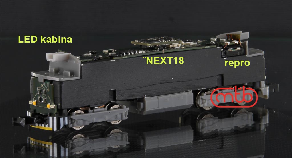 Vzhledem k tomu že Honza nebude Brejlovce provozovat s dekodérem, nerealizovali jsme úpravu na plošného spoji, umožňující plné využití možností dekodéru, který diky patici Next18 umožňuje využít až funkce po F6. Bude tedy možné nezávisle ovládat horní reflektory a osvětlení kabin strojvedoucího. Je dokonce možné instalovat zvukový dekodér (reproduktor již v lokomotivě je). Můj závěr - lokomotivu se vyplatí si pořídit.