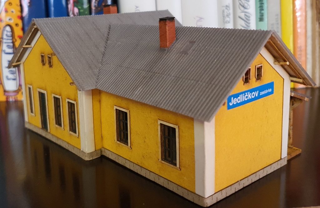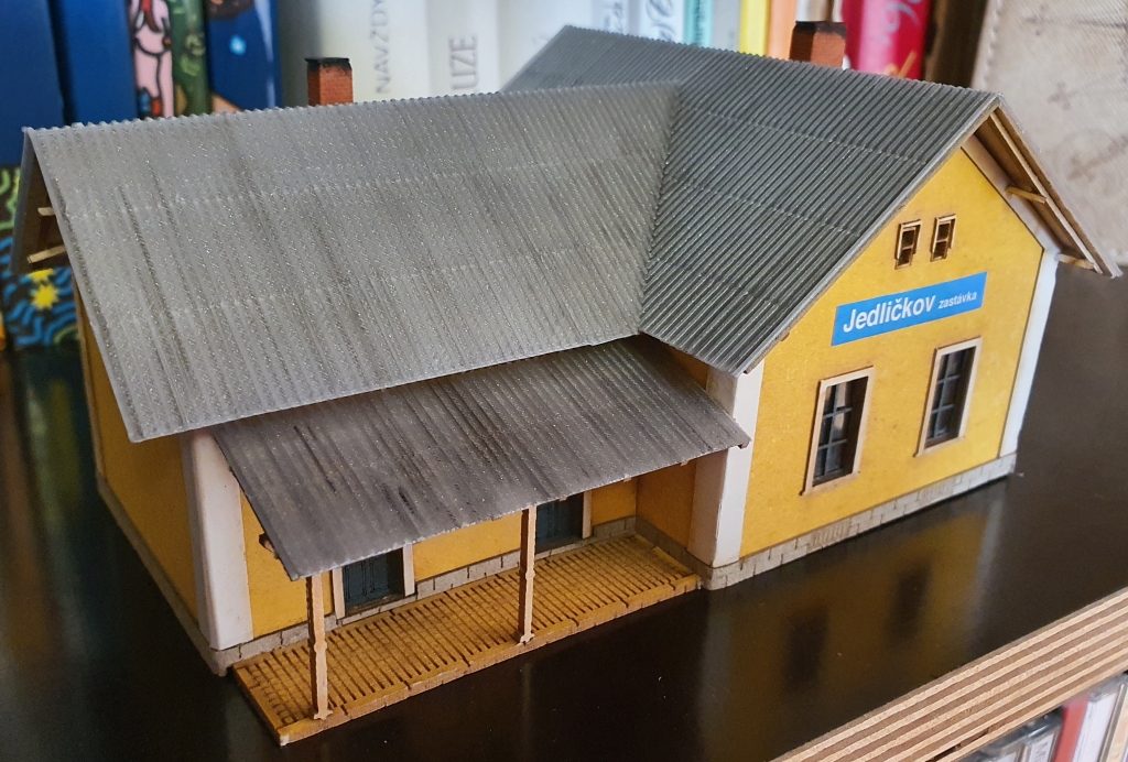 Co by se dalo vylepšit pokud bude chuť ze strany stavitele čili tvůrce modelu jsou "detaily" na střeše co se týká klempířiny : štíty, závětrné lišty zboku krytiny (tuším, že tam nejsou dodělány) úžlabí = krytina je u sebe, měla by tam být mezera s "podplechováním", osazení žlabů - stáří dle uváhy stavitele a svody dešťovky do kanálu nebo s kolínkem na úrověň terénu. Asi taky dráty a hromosvody. pak by to dostalo daleko lepší šnak. Z mé strany jen návrh, možná je to plánováno a pod. Ať se daří a stavba dělá radost.