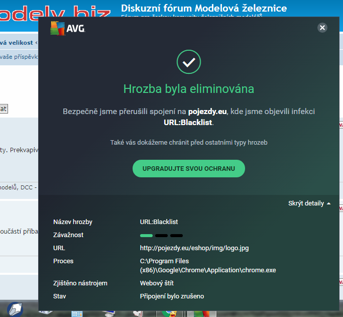 Přímo na stránky po-je-zdy se dá dostat a bez hrozby. Jen vše co je pod po-je-zdy e u lomeno e shop ihned hodí hlášku. Z tohoto chování usuzuju, že není zavirováno fórum a zřejmě asi ani ne Viktorovo stránky. Spíše se přikláním k chování netových antivirů, že je někde chyba v databázi bleklistů. Uvidíme. Dám echo Viktorovi Pohořelému.