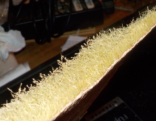 Vršky "klasů" jsou v detailu něco mezi ovsem a "vybuchlým" orobincem, ale už z půl metru je evidentní, že je to obilné pole. A to je přesně podle mých potřeb. Pole z doby, kdy se pro praktické upotřebení musela sláma řezat na polovic, jinak se hodila jen na povřísla. Už chybí jen ty panáky a snopy, ale ty se časem určitě taky objeví - někdo to určitě udělá aspoň v podobě naloženýho žebřiňáku se zápřahem...