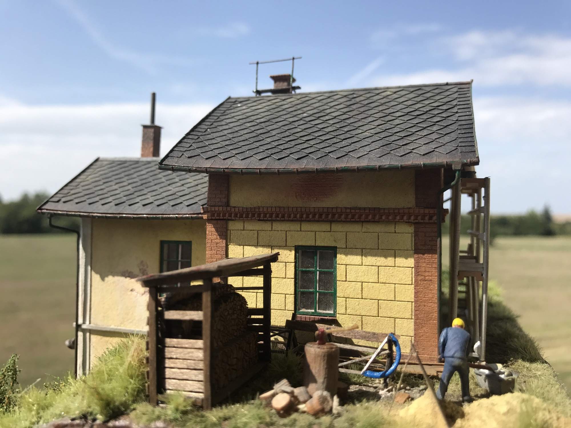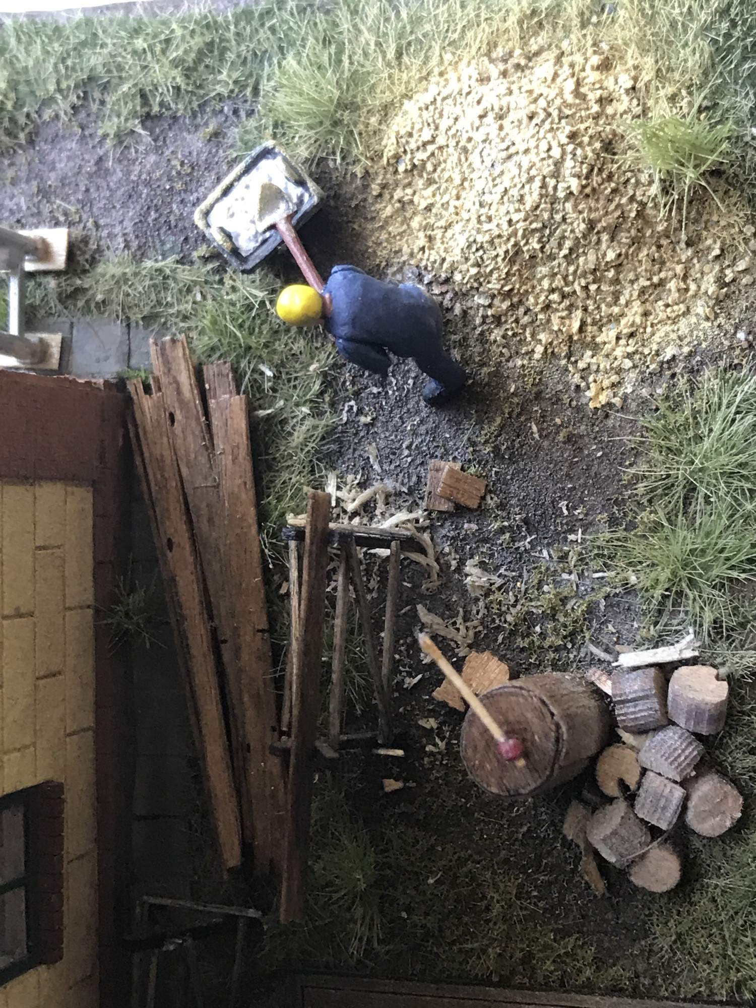 Začal jsem modelařit pro radost a nesnažím se dělat kulisy do filmu :-) . Je to můj druhý model a vím, že se mám ještě hodně co učit. Nechci ale zacházet do takových extrémů, kdy budu těšit, zdali je helma a pana s lopatou v pořádku či nikoli. Možná k tomu časem také dozrají