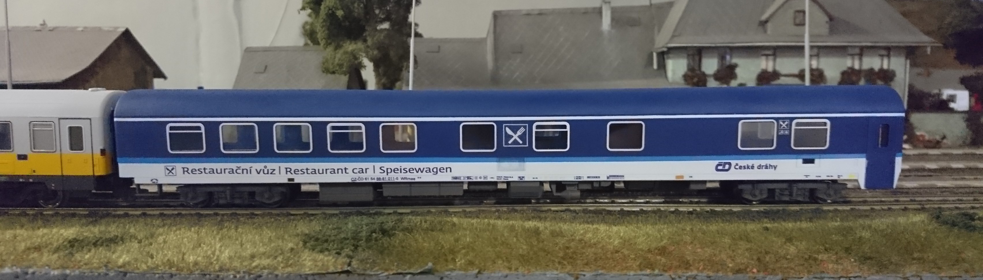 Nakoľko sa na slovenských rýchlikoch v rámci vyrovnávky výkonov dosť čcasto objavujú reštauračné vozne v správe ČD, rozhodol som sa jeden si postaviť. Konkrétne WRmee 816. Základom je kasňa vozňa od výrobcu Heris. Odpovedala dĺžkou a hlavne profilom strechy. Podvozky budú upravené Roco, interiér buď z papiera, alebo plastových profilov.
