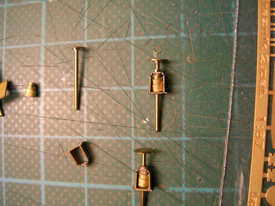 Po úmorných bojích, kdy jsem konečně provléknul drátky stožárem a připájel první dvě ledky mi odpadly stínítka. Když jsem je konečně dostal zpět, a připájel i výztuhy zpět na místo a začal konečně dávat návěstidlo dokupy, odpadly ledky, protože se ukroutily nožičky (a už je není kam připájet). Dalo mi hodně práce abych všechno na místě nerozšlapal.