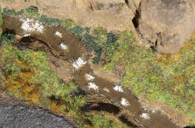 tak jsem ještě vyštrachal pokusný vzorek potůčku na kterém jsem zkoušel lak než jsem ho aplikoval na vlastní diorama
