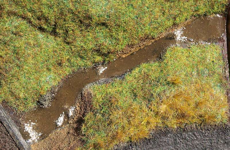 Napadá mě při pohledu na diorama ještě jedna otázka. Co voda v potoce, už je rozhodnuto jaký materiál použiješ? Troufnu si říct, že cokoli kromě epoxy 1200 vyvzlíná na takovém povrchu z koryta ven.