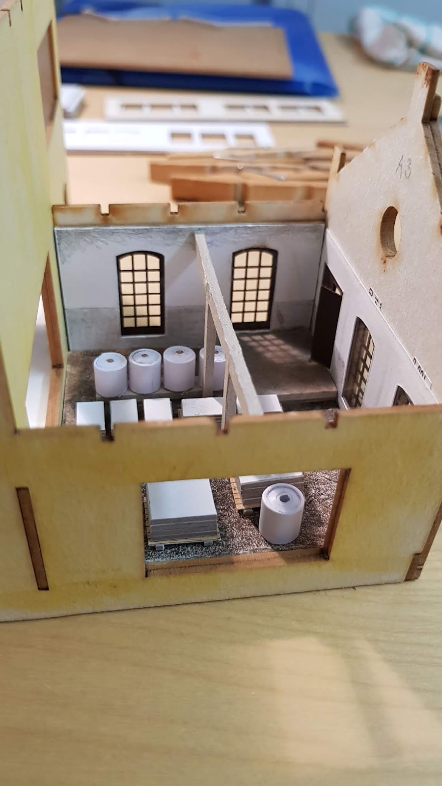 talien píše:Máš třeba nějaký příklad jak byly ty role naležato skladované? Nějaké zarážky? Možná klíny? Ty by pak v měřítku asi ani nebyly vidět