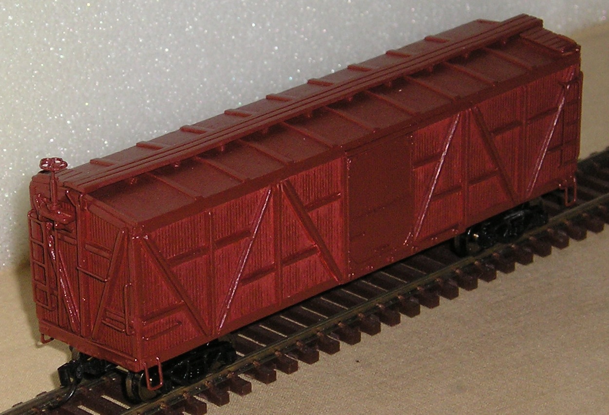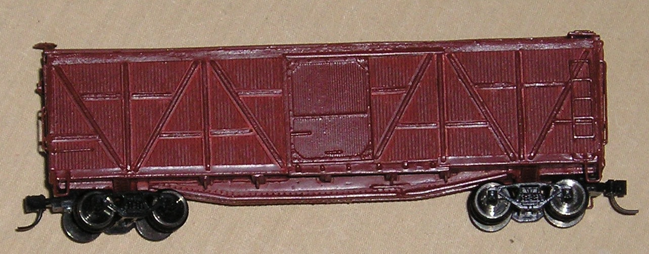 Vzhlehem k tomu, ze mam takovouto stavebnici jeste jednu, zvolil jsem druhou moznost a pokusil se z toho udelat kryty vuz typu X-23 Pensylvania Railroad. Jsou tam urcite nepresnosti, ale predloze se to snad podoba. :D
