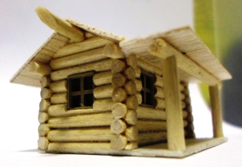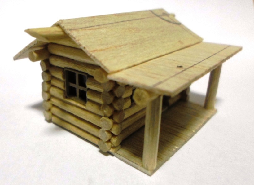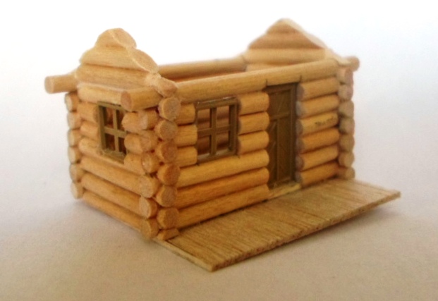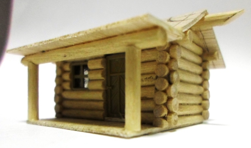 jak se většinou dělá roubená vazba na modelech ze špellí, v místě rohové vazby se seříznou vdy dvě protilehlé strny špejle tak aby na sobě seděli, není podmínkou aby se špejle přímo dotýkali, může mezi nimi být malá mezírka, takže na sobě budou přilepené jen v rozích, je to sice křehčí a než zaschne lepidlo může se to nevhodnou manipulací snadno zbořit, ale dá se to třeba zadní stěnou lepit na karton, který zvenčí nebude vidět, po slepení a natření barvou (jak sem to na ukázce dělal já), jsem zatmelil spáry mezi trámy (akrylovou modelovací pastou, osobně používám od firmy pébeo