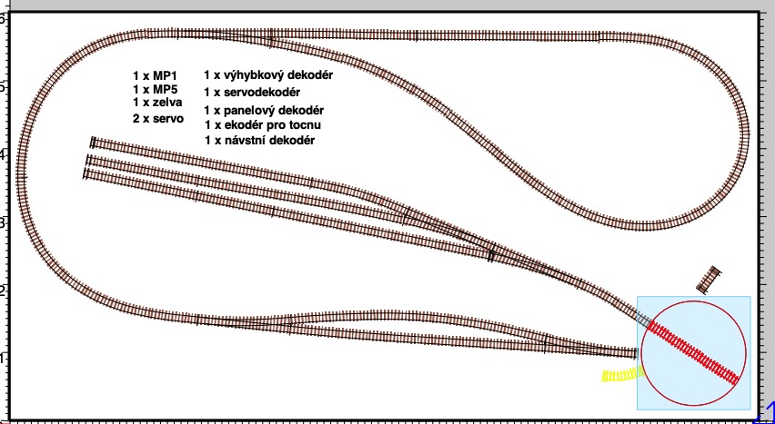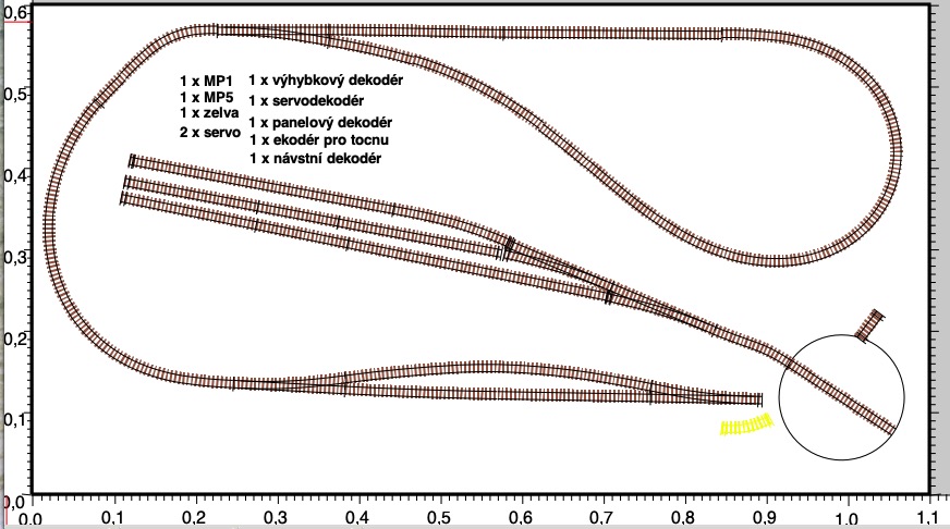 - Vytisknout hotový návrh v libovolném měřítku, včetně 1:1, umožňující použít jej jako šablonu pro pokládání kolejí.
