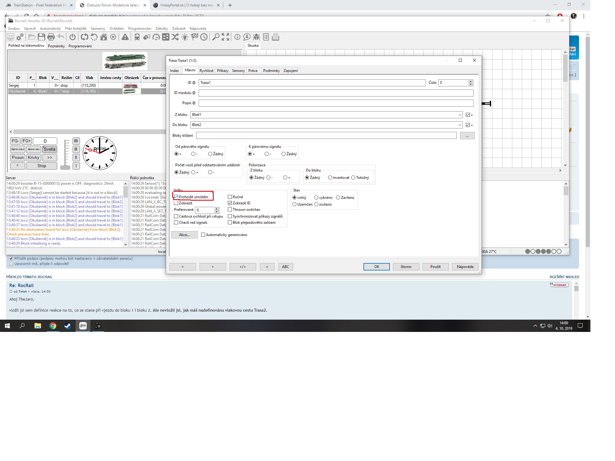 Urobil som to podľa toho ako si mi to napísal ale žiadna zmena, z bloku1 do bloku2 ok. Opačne už nie a mašine pokračuje "ďalej". Keď to zruším celé a nastavím znova blok1 do blok2 už mi to nejde označiť a pritom v oznámení v tabuľke na ľavo ide lokomotíva z bloku1 do bloku2. Ja fakt neviem čo robím zle, pozeral som videá na YouTube aj stepbystep. Jediné čo viem že problém je medzi PC a stoličkou :lol: