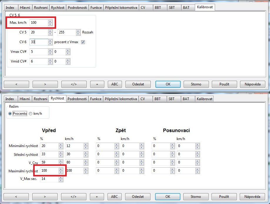 P.S: Po kalibraci lokomotivy pak nutno nastavit jednotlivé rychlostí lokomotivy na záložce "Rychlosti" ve vlastnostech lokomotivy.