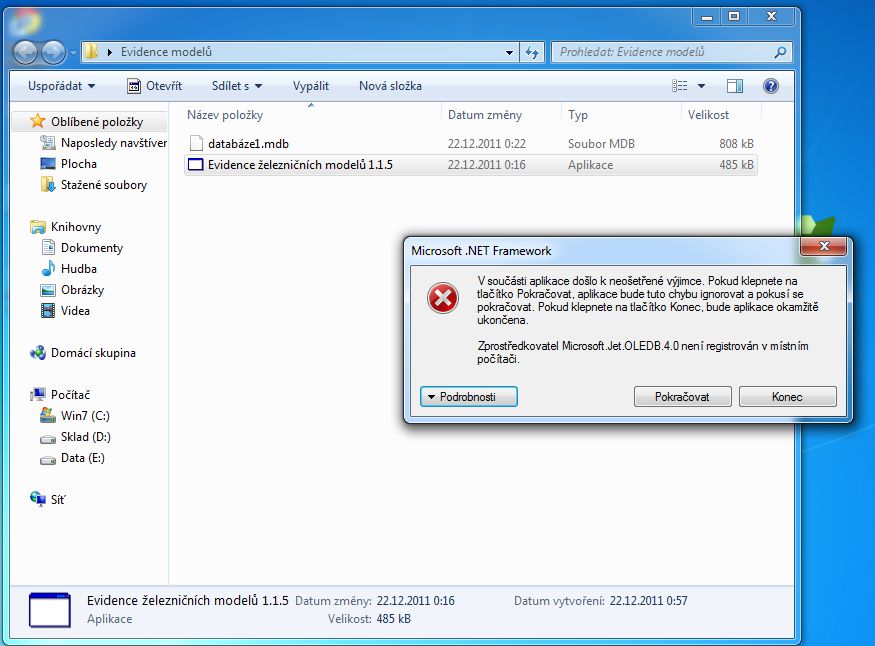 Program pri ignorovaní chyby nabehne ale zmeny v databáze - pridanie údajov neuloží.