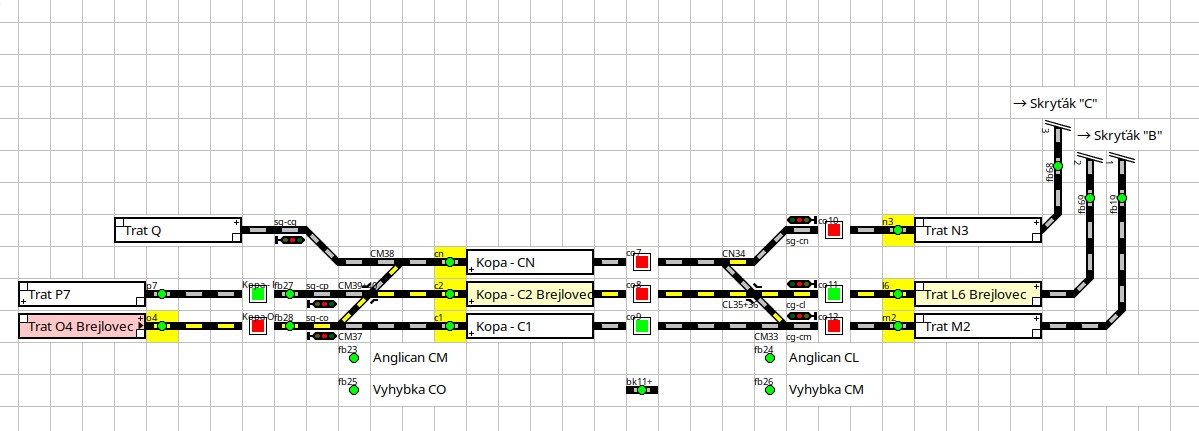 belgarat píše:Najde se dobra duse, ktera se podiva na muj trackplan co tam mam blbe ? V odbocce (viz obr) mi RocRail pri presunu lokomotivy z bloku O4 (vlevo dole) do bloku CN (vpravo nahore) zaryte naplanuje trasu pres C2 (coz je uprostred, blbe). Routes se zdaji byt spravne ... ale _neco_ tam mam urcite nastavene spatne nebo nedodelane.