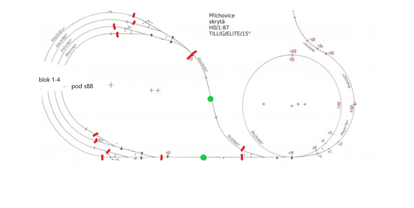 Kdyby náhodou, mohu ihned přepojit na tři úseky na každé koleji mezi vyhýbkami.