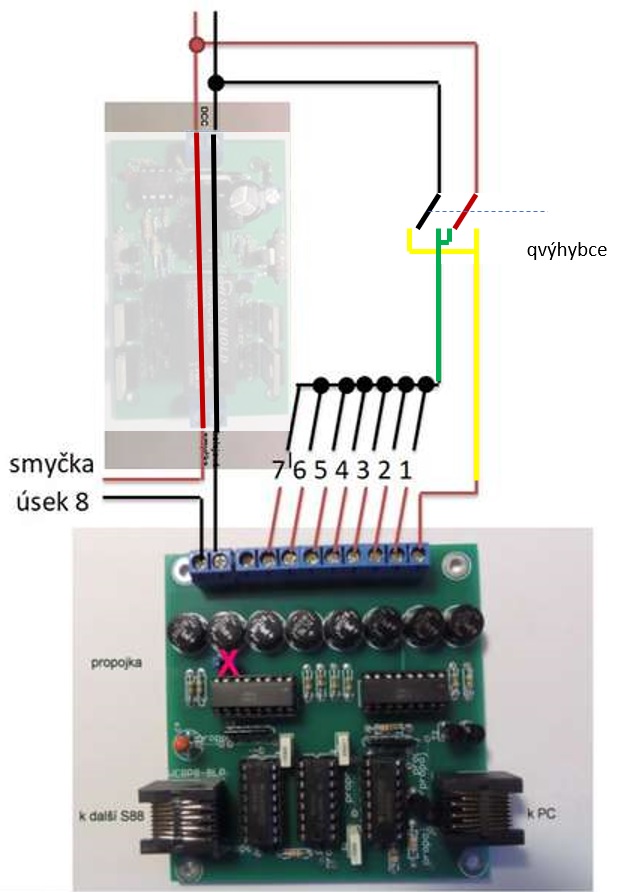 Pokud by ses bál zkratu při nesprávném najetí, který by mohl ovlivnit celou smyčku pak můžeš srdcovku této výhybky zapojit přes žárovku.