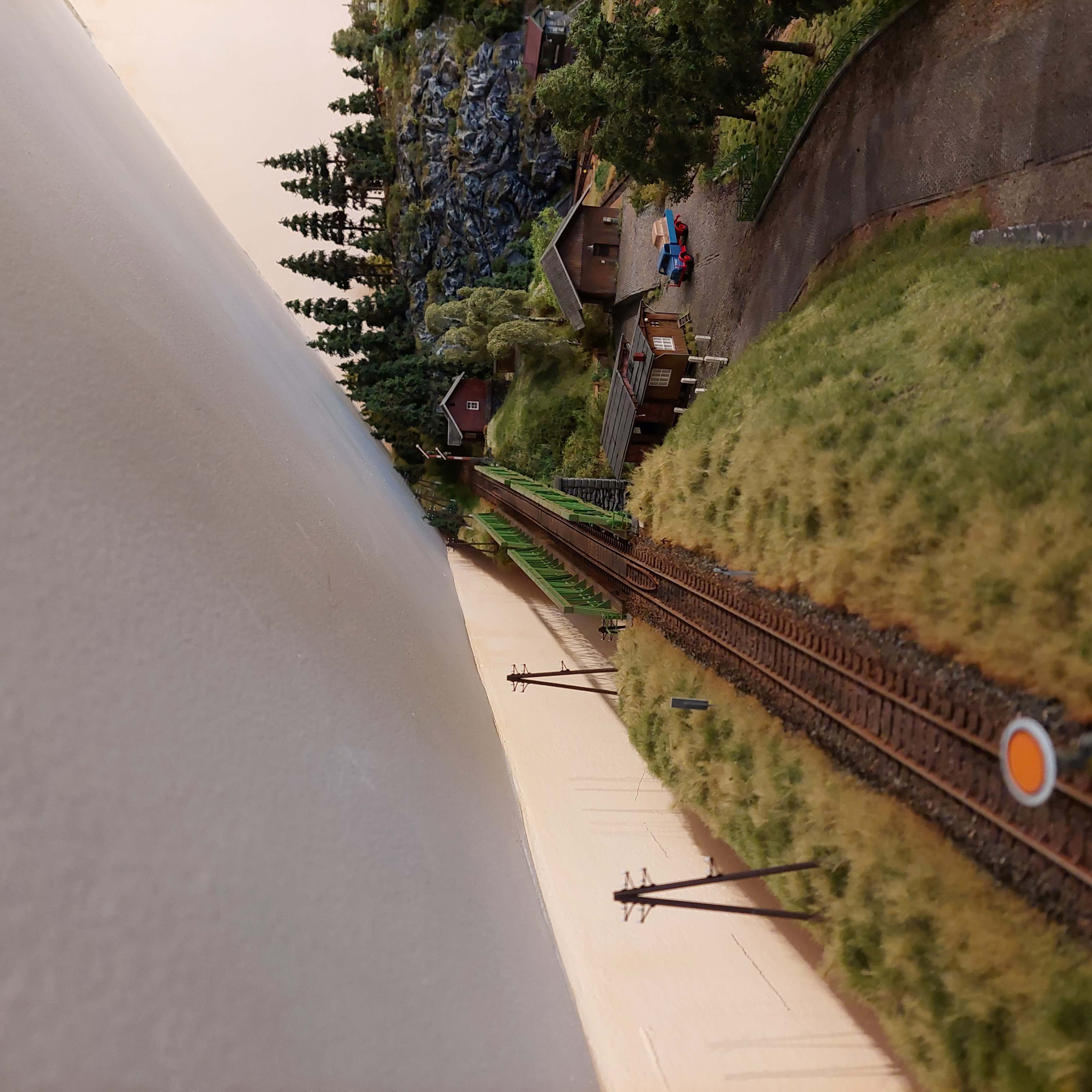 Mnohem snazší je udělat kolejiště tak, aby na tapetu nic nenavazovalo. Tedy - ne tak, abys musel na tapetu dodělávat silnici. To funguje jen pro jeden jediný pozorovací bod. Lepší je tu cestu nějak ohnout, schovat za strom atd., aby mohla jít šikmo a schovat se třeba za strom, za výčnělek skály, za dům... Tuhle jsem tady dával Marwinovi odkaz na Renauda Yvera - sice francouzsky, ale stačí se dívat.