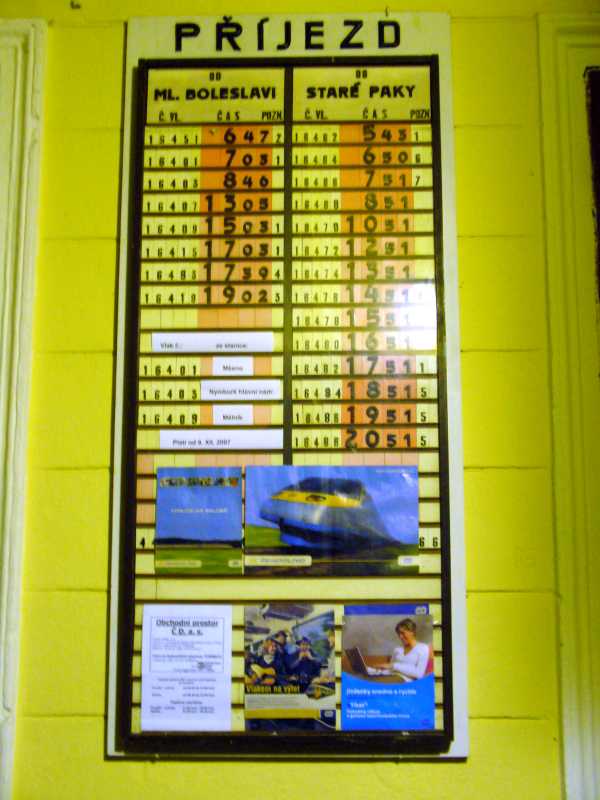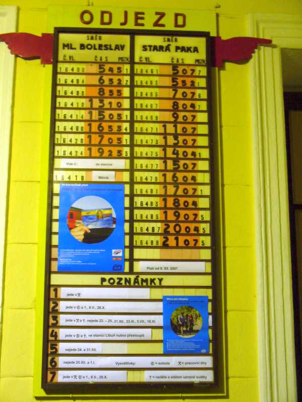 Nemohu na netu najít fotografie starých venkovních jízdních řádů, které se skládaly z písmen a číslic a byly umistňovány v budovách i na nástupištích. Za informaci, kde hledat předem díky.