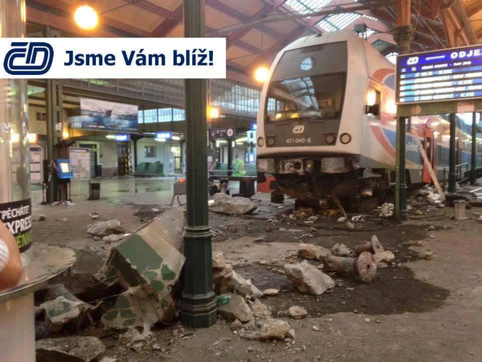 Na Masarykově nádraží v Praze projel osobní vlak zarážedlo, dvě osoby byly zraněny