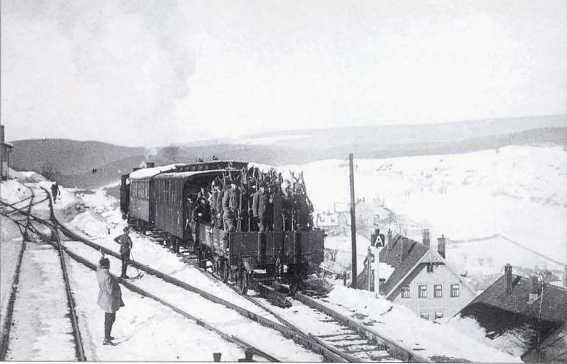 Záběr byl pořízen v únoru 1940 na barevný diapozitiv, což ho samo o sobě řadí mezi rarity. Jeho autorem byl sudetský Němec, rodák z Jablonce nad Nisou Otto Klaar, který se mj. autorsky podílel na známé publikaci Železnice v Sudetech 1938-45 vydané česky v r. 2003 v překladu Ludvíka Losose. Vlak vyjíždí z Nové Vsi u Jablonce ve směru na Smržovku a vede ho dvojspřeží lokomotiv: Vlaková 92.22 DR (ex 422.0 ČSD ex 178 kkStB, i když tím bych si nebyl tak jistý, jde o tvrzení autora fotografie a z té vlakové lok. toho zas tolik vidět není... s ohledem na letopočet a místo pořízení snímku by to mohla být i 93.15 DR ex 423.0 ČSD) a přípřežní 98.12 DR (ex 313.4 ČSD ex 162 kkStB ex některá z původních lokomotiv řady G RGTE nebo XV SNDVB). Neodpustím si poněkud zlomyslnou poznámku, že DR zkoušely na jabloneckých lokálkách po připojení Sudet kdeco, včetně tehdy nových a moderních lokomotiv řady 64, které tam ale zvlášť v zimních podmínkách hanebně selhávaly, aby se nakonec pokorně vrátily k osvědčeným starorakouským konstrukcím...