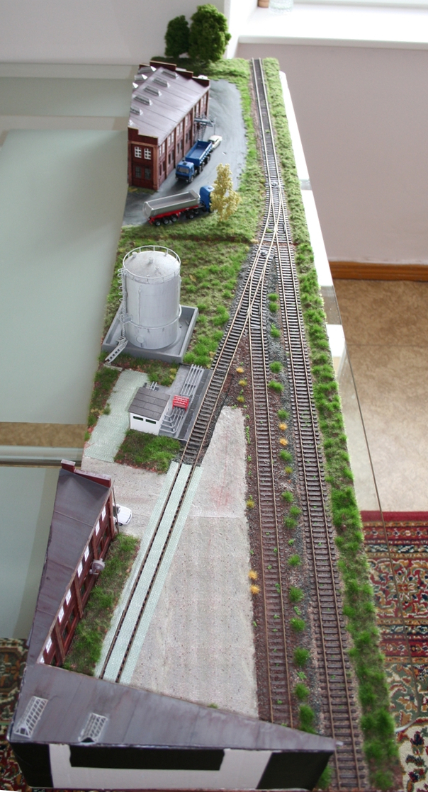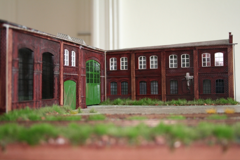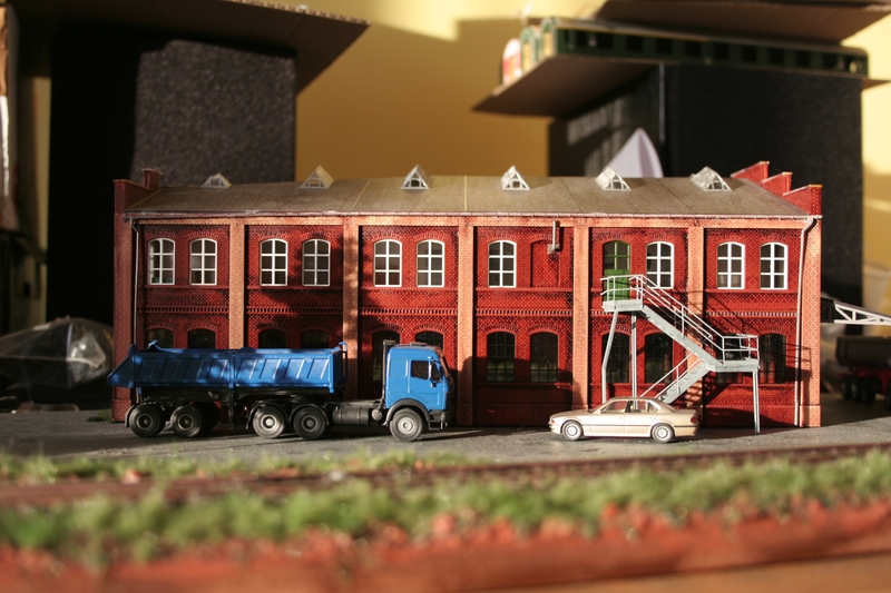 Výhybky jsou bez úprav, budova Auhagen, kterou jsem vtipně rozdělil na několik částí. Má to představovat kraj průmyslového areálu, který je ve stísněných podmínkách. Poněkud alibisticky neurčuji, co tam je, ať si posunuji s tím, co se mi líbí