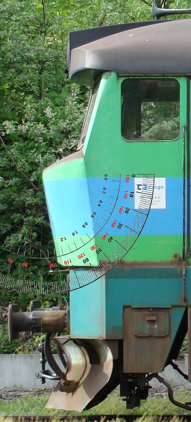 Podle toho pofiderního obrázku modelu je to 17°, u skutečné lokomotivy 11°. Nemohu samozřejmě doložit kalibrační list z akreditované laboratoře na svůj úhelník, ale musel postačit jeden vygooglený. Kdyby se někdo obětoval a vyfotil svůj nádherný a přesný model s kalibrovaným úhelníkem dle toho bídného vzoru (proč asi bídného, že?) a kolmo na čelo, tak fotek Zamračených mám přes 1Gb :D A stále mám i fotografie Krys… :twisted:
