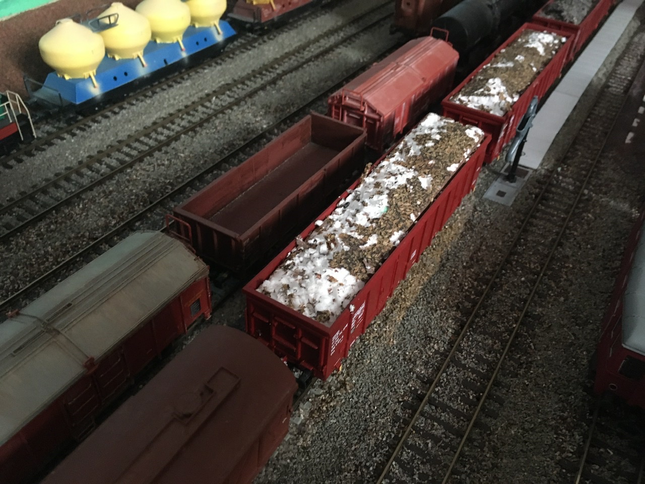 Trochu mě překvapily, ve 3. patře jsem je nečekal. Kupodivu nebyli v bytě, ale v místnosti s kolejištěm, které je nad ním. Divil jsem se čím se živí. No tohle jsem dnes objevil. V SN byl vlak s vozy Eas ze setu. Jako imitace nákladu (řepy) byly sezamová semínka. Tak je myšky vyložily a nahradily imitací briket.