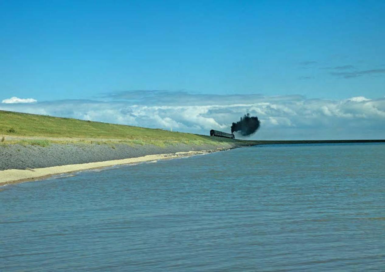 Olejové lokomotivy DB 012.082 a 012.077 (ex 01.10-Öl) z depa Hamburg-Altona vezou dne 24. června 1972 spěšný vlak E 2109 z Westerlandu na ostrově Sylt po 12kilometrové hrázi Hindenburgdamm do Hamburku. (O historii hráze Hindenburgdamm více viz tady: https://www.k-report.net/clanky/osmdesa ... nburgdamm/.) Pravidelné nasazení řady 012 na rychlíky z depa Altona, které trvalo 4 roky, se už ale blíží ke konci - poslední vlak odveze lok. 012.077 30. září téhož roku.