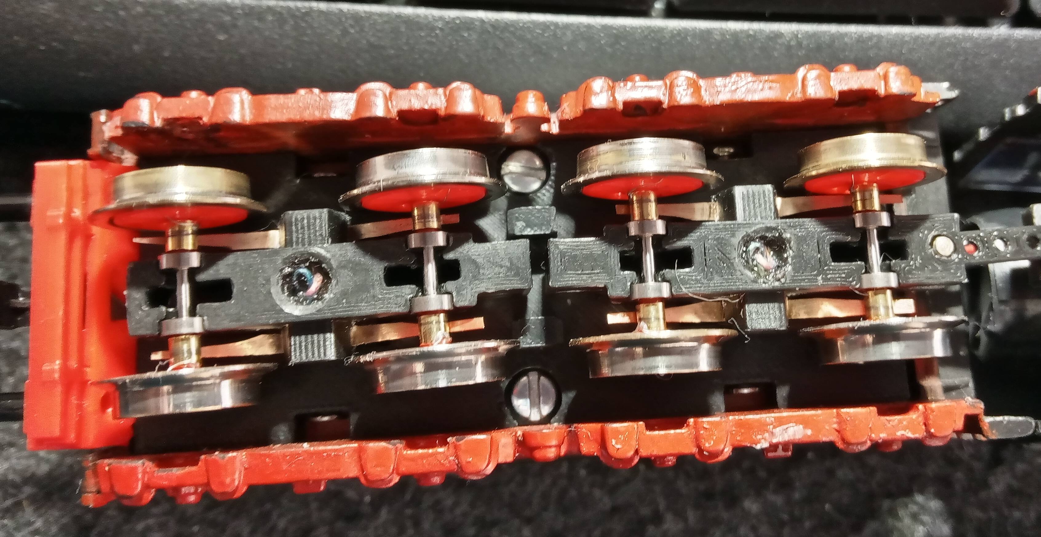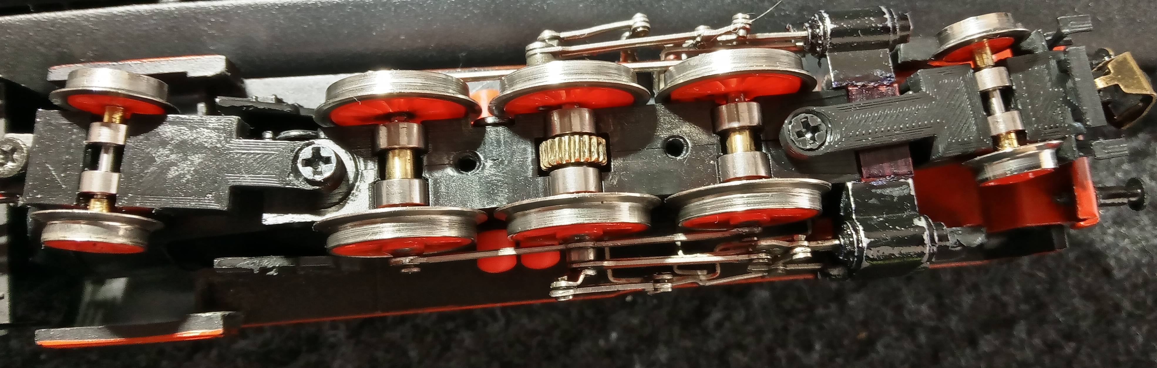 Mám také variantu, kdy je hlavní osa ( se šnekem ) uložená v kluzných ložiskách. S takovýma ložiskama jezdí lokomotiva úplně potichu, ale ložiska mají větší odpor.
