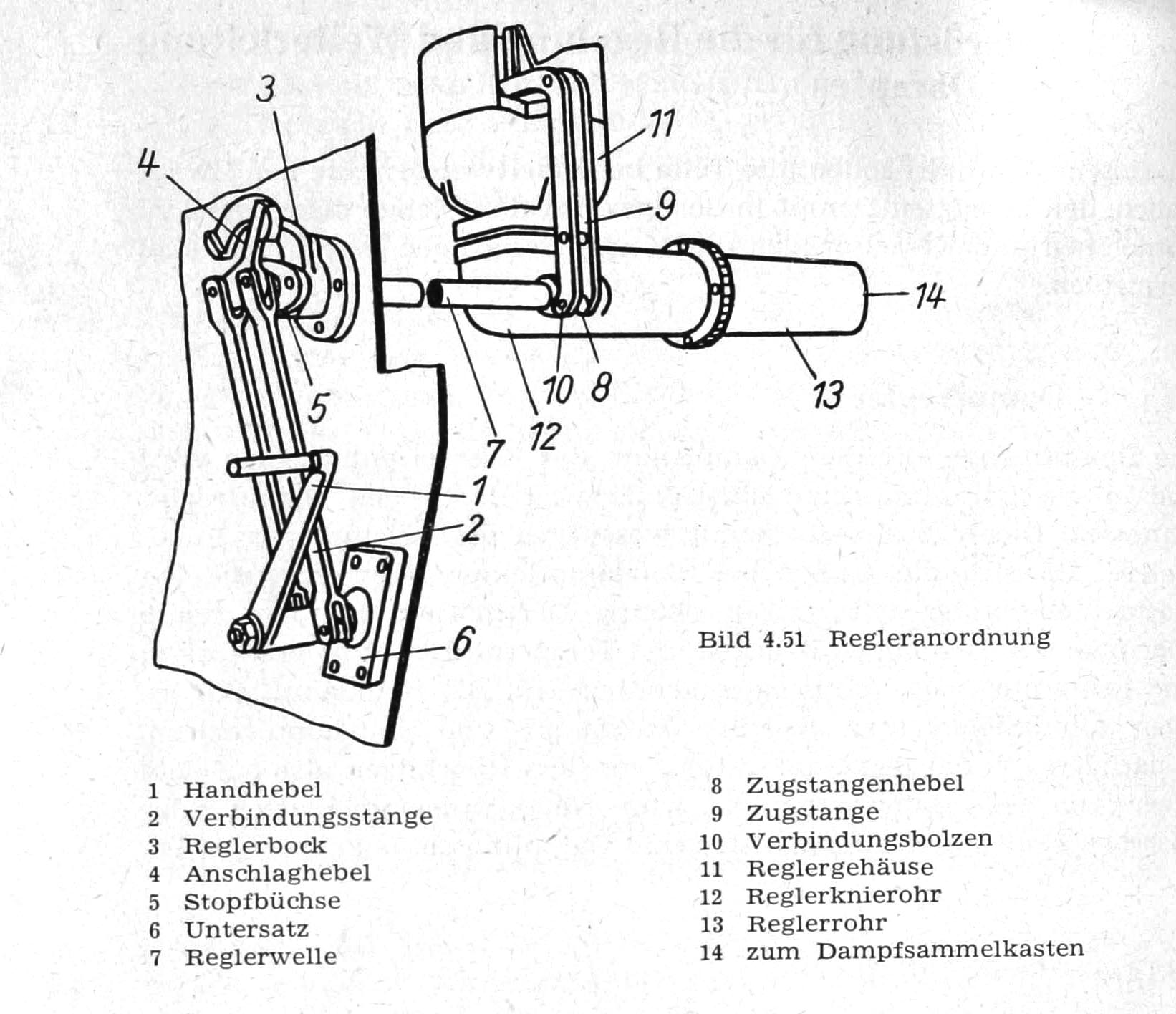 U pruských a později německých lokomotiv býval regulátor v parním dómu a ovládací hřídel procházela podélně kotlem nad topeništěm. Ovládání se provádělo pákou. Na výkresu je pruská S10, ale G10, která pochází ze stejné doby, byla konstruována podobně.
