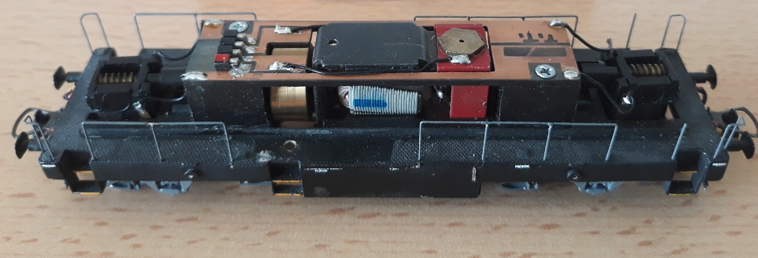 Pre menšie rozmery motora a zavažia sa v kapotách uvoľnilo dost miesta na zvukový dekoder a celej vymene elektroinštalacie. Pôvodny dekoder Zimo MX 620 som vymenil za zvukovy ZimoMX648. Žlte diody som vymenil za teplé biele.