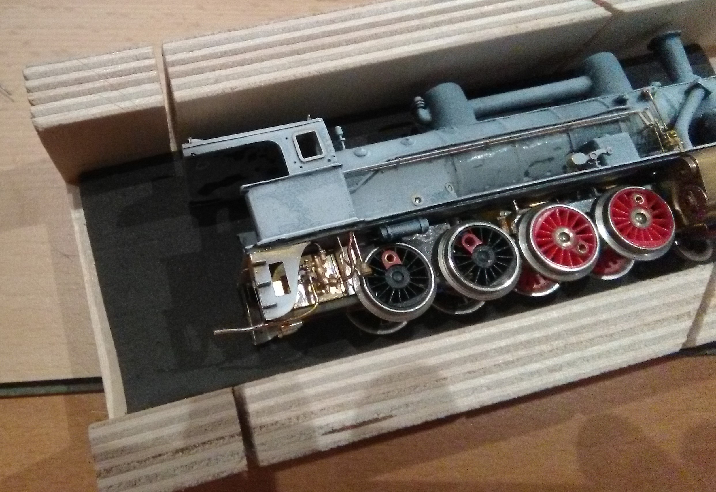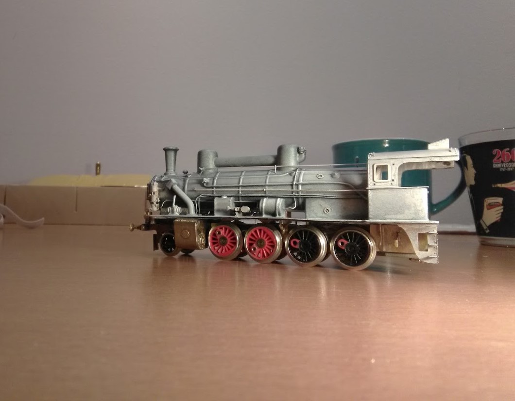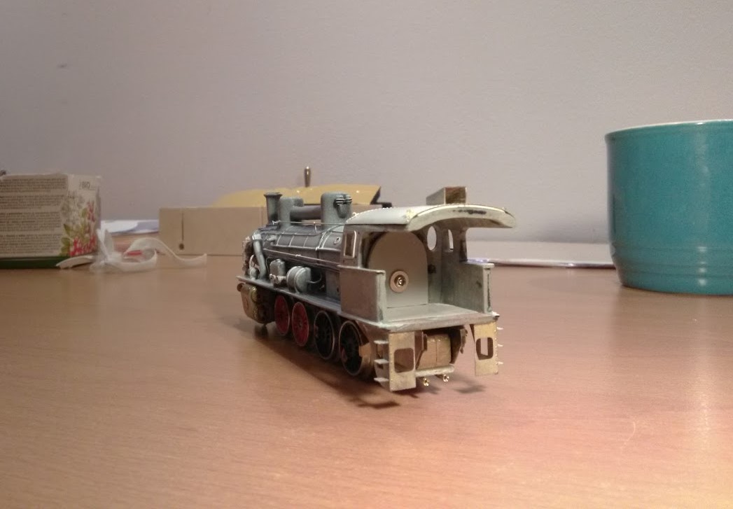Spasoval jsem dohromady kotel a rám lokomotivy, rám postupně doplňuji o detaily jako jsou pružnice, nosiče ochozů, nosiče kotle, atd. V budce je příprava na osazení makety kotle. Budka celá ještě potřebuje dotáhnout, včetně posunutí střešního větráku. Ale to až bude hotový rám. Jízdní zkoušky s tendrem dopadly dobře, jen občas tendr cuká. Mám podezření na otřepy na plastovém šneku, bude potřeba jej opět rozebrat, prohlédnout a složit. Taky bandáže nesedí jak by měly, občas vylejzají ven a tendr se kolíbá. Pořídím nové. Těším se na zapojování napaječů, to je jedna z posledních akcí na rámu a může jít do laku. Přikládám pár fotek.