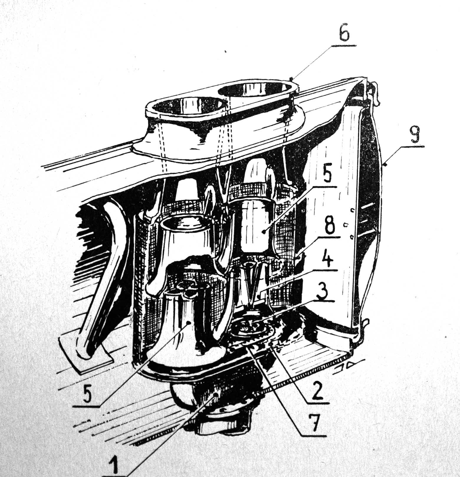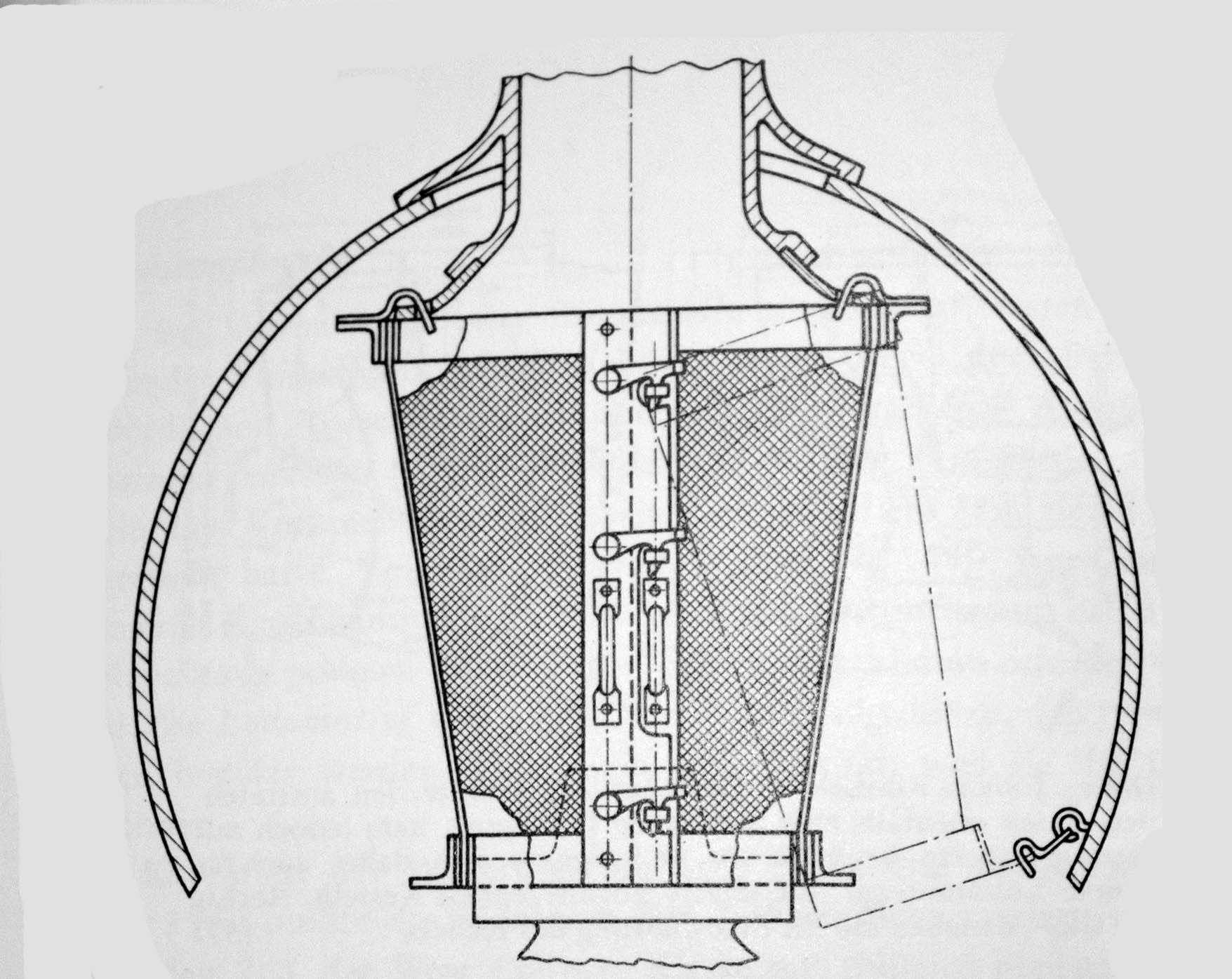 V příloze posílám výkres, kde je vidět obrys jiskrojemu našich poválečných lokomotiv s dyšnou Kylchap. Na druhém obrázku z Gieslovy Anatomie je vidět konstrukce a způsob otevírání jiskrojemu německých lokomotiv z konce dvacátých let