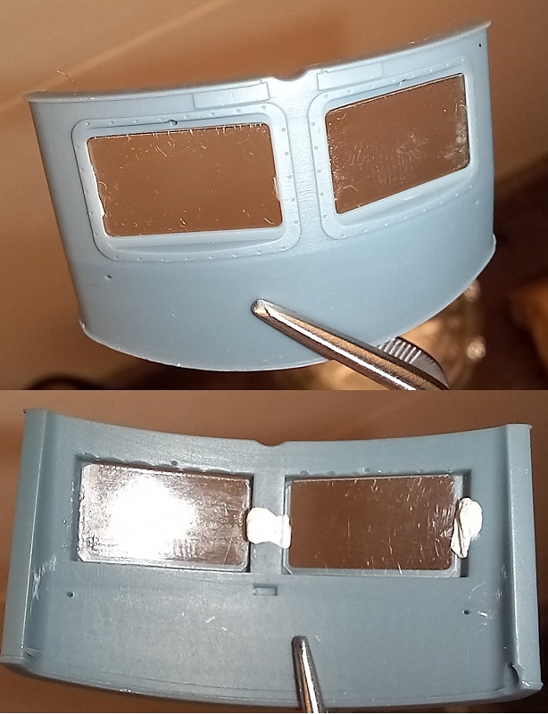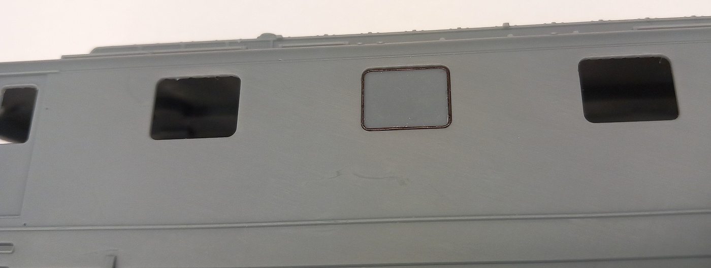 Kabina pasuje. To zdánlivé prosvítání bočního okna není přímo otvor okna, ale vybraná kapsa na zasklení. Modelová podlaha je pod dolní hranou okna.