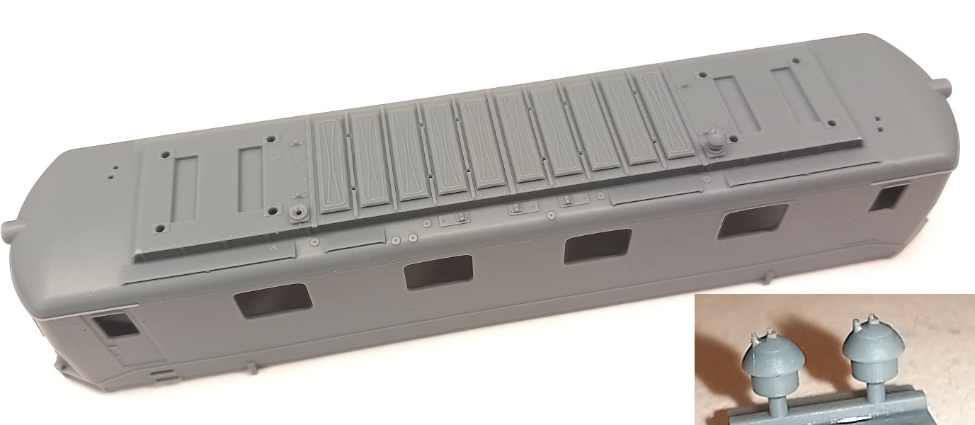 Přemodelováno rozmístění lávek a střešní výstroje, bleskojistky; odstraněny třmeny vík odporníku, aby se vůbec daly vymaskovat pro stříknutí stříbřenkou.