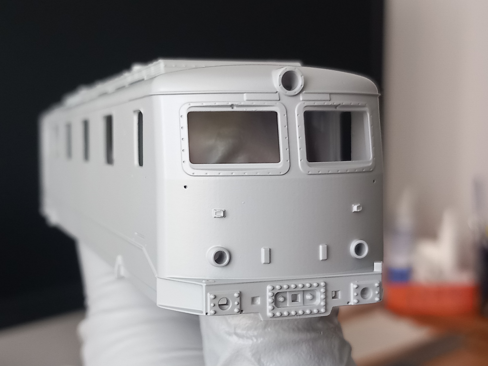 Ještě upravím boční okno kabiny a jdu na povrchovou úpravu, ať je nějaká změna a viditelnější výsledek. Bižuterii na střeše vymyslím později.