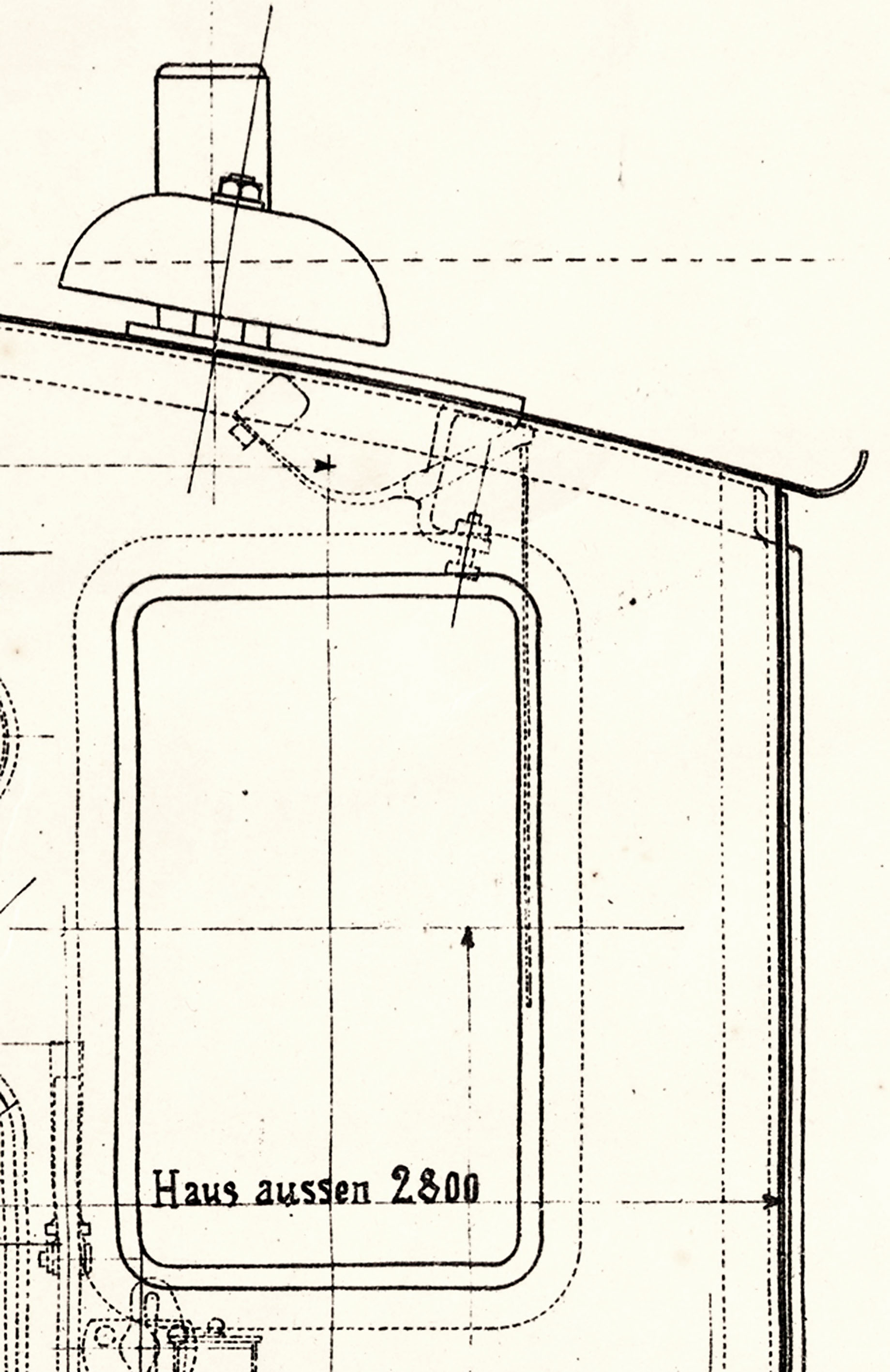 A proč byla plechová roura až nad střechu? Protože vodojem byl výšky 1100 mm, tedy i tyčka na plováku měla tuto výšku. Ale od horní hrany vodojemu ke stropu střechy bylo jen 890 mm. A když byl vodojem plný, plovák byl až u horní hrany nádrže, tím i tyčka byla v prostoru budky. Ale horní konec tyčky by narazil na střechu. Tak tam byla praktická trubka, kam tato indikační tyčka zalezla.