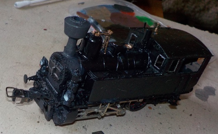 Pak sem hodil Bw_Ig svoji monografii a všechno bylo jinak. nejdřív šly dolů světlíky, pak jsem dodělával armatury a dneska jsem si od Murase přivezl báň na komín a set různých detailů, na které posléze taky dojde. Ta báň sice není ideální, ale na některých fotkách něco podobného je. Podařilo se mi zachovat pojízdnost, detaily se budou honit postupně (rámy oken, zasklení oken, nově (rovně) přilepit schůdky, píšťala, povrchovka a možná i nějaký náznak interiéru, aby nepoutal pozornost motor).