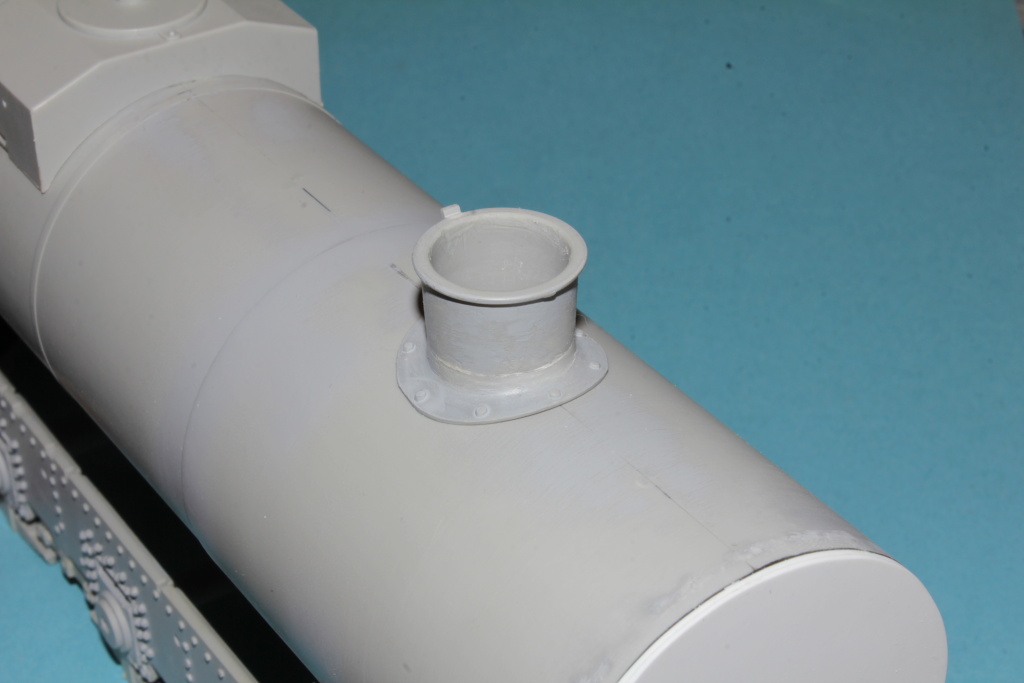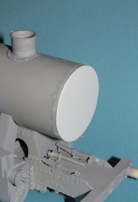 Poté jsem nasadil již komín na dýmnici a zkušebě nasadil písečník a parojem.
