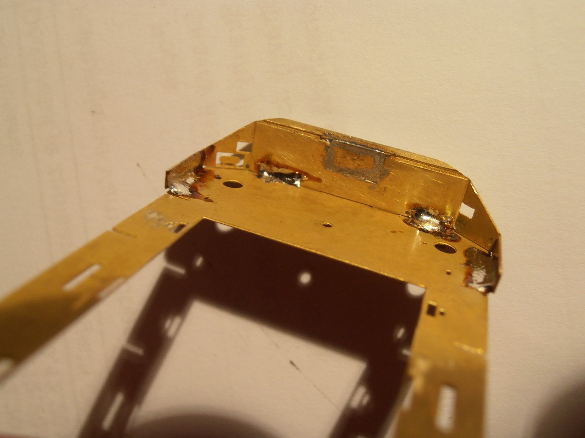 Som dosť puntičkár a štve ma nevzhľadnosť spojov zvnútra, aj keď to nebude vidieť... nemohol som ale letovať viac, aby som nepretopil zakrytý otvor spriahla a nezalial drobné otvory na vrchu nárazníka. Malé medzierky medzi rámom a nárazníkom vytmelím, otázka znie ale čím ? máte skúsenosti s niečím čo drží na mosadz ?