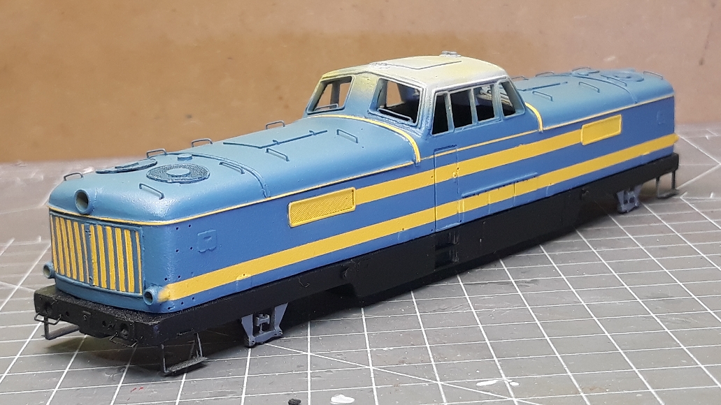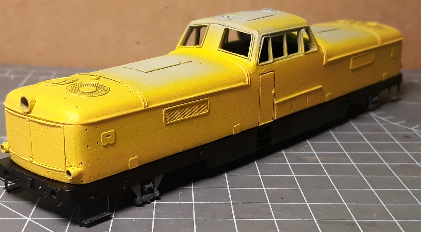 Po letnej pauze som znovu oprášil model dvojagregátky. Prišiel čas na nastrek. Ako prvé som nastriekal rám a žltý zaklad kapoty. Žial presné odtiene farieb na kapote som nevedel nikde najsť, preto som si ich musel namiešat.
