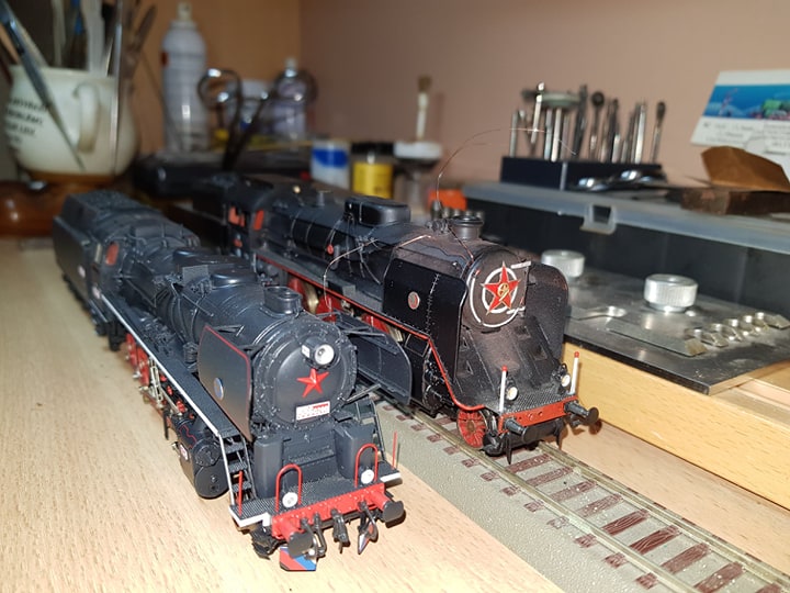 Dokončil jsem 387.043 v TT . Lept od Jan Cekul , pojezd BR 01 Tillig. Kotel zkrácen dle skutečnosti . Pojezd je velký kompromis, ale na přestavbu dle skutečnosti jsem neměl ( změna roztečí dvojkolí, snížení okolků ( nevím zda by pak model byl schopný jízdy na kolejišti), změna rozvodů).