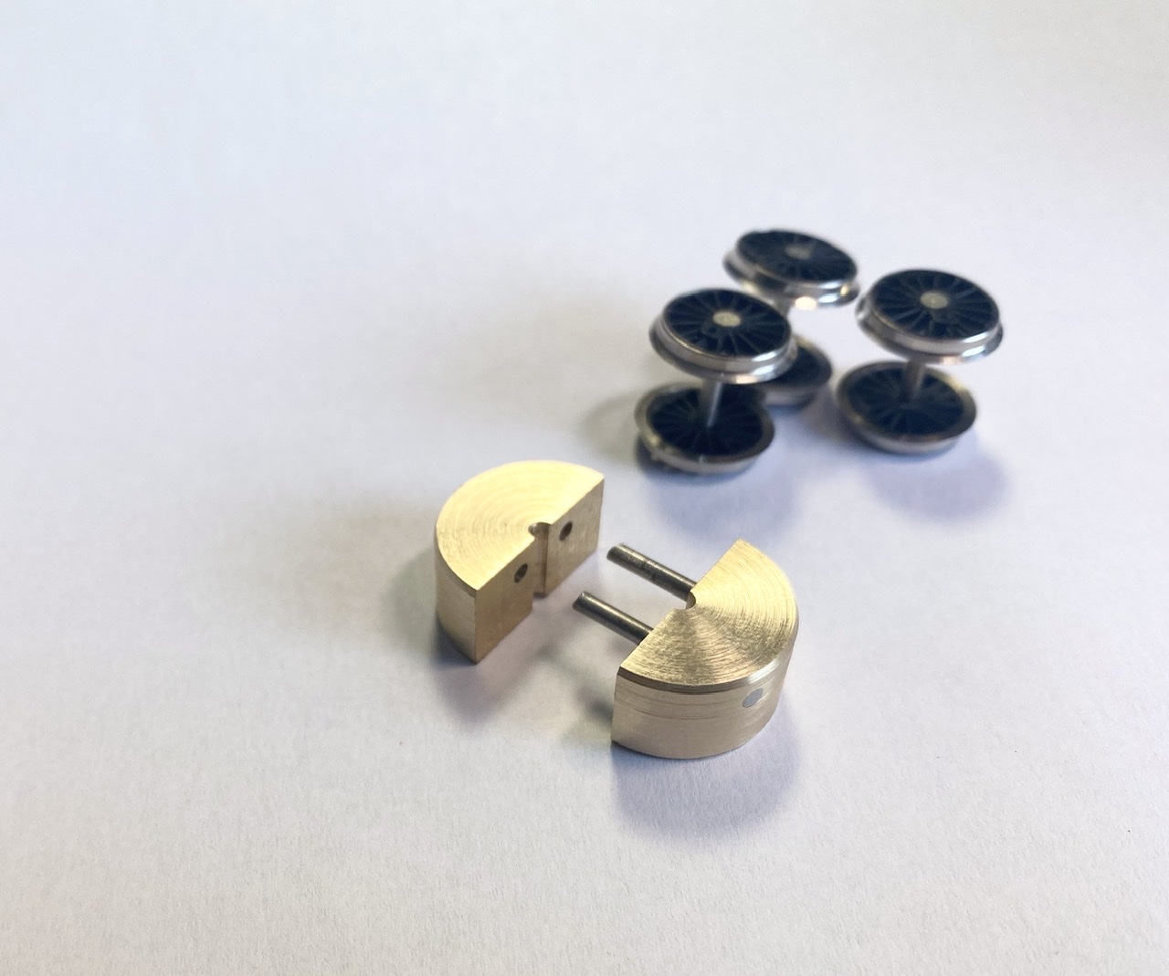 Vážím si Tvé nabídky na spolupráci. Kdyby se zmenšily okolky ze všech třech náprav, vypadalo by to určitě líp. ALE. Když se to ubere hodně, bude to v obloucích vypadávat. Když bude zmenšení okolků malé, nedojde ke kýženému zkrácení rámu a kotel bude muset být zase oproti skutečnosti delší. Když se podíváš na nákres mikáda, tak uvidíš, jak jsou nápravy natlačené k sobě. Kola modelu TT mají okolky oproti skutečným kolům obrovské. Okolek třetí nápravy je ve skutečnosti pár centimetrů od skříňového kotle. První hnaná náprava je zase poměrně dost blízko druhé nápravě podvozku běhounu. Aby toho nebylo málo, tak kola z BR 01 jsou ještě ve skutečnosti větší o 50mm, než je má mikádo. Tohle všechno, když se sečte, tak potom nutně musí být délka mašiny větší a potom to působí proporčně blbě. A aby toho nebylo málo, tak průměr kotle Cekulovy stavebnice je menší, než by měl být, což ho opět opticky prodlužuje. Jsem z toho všeho nějak rozladěný.