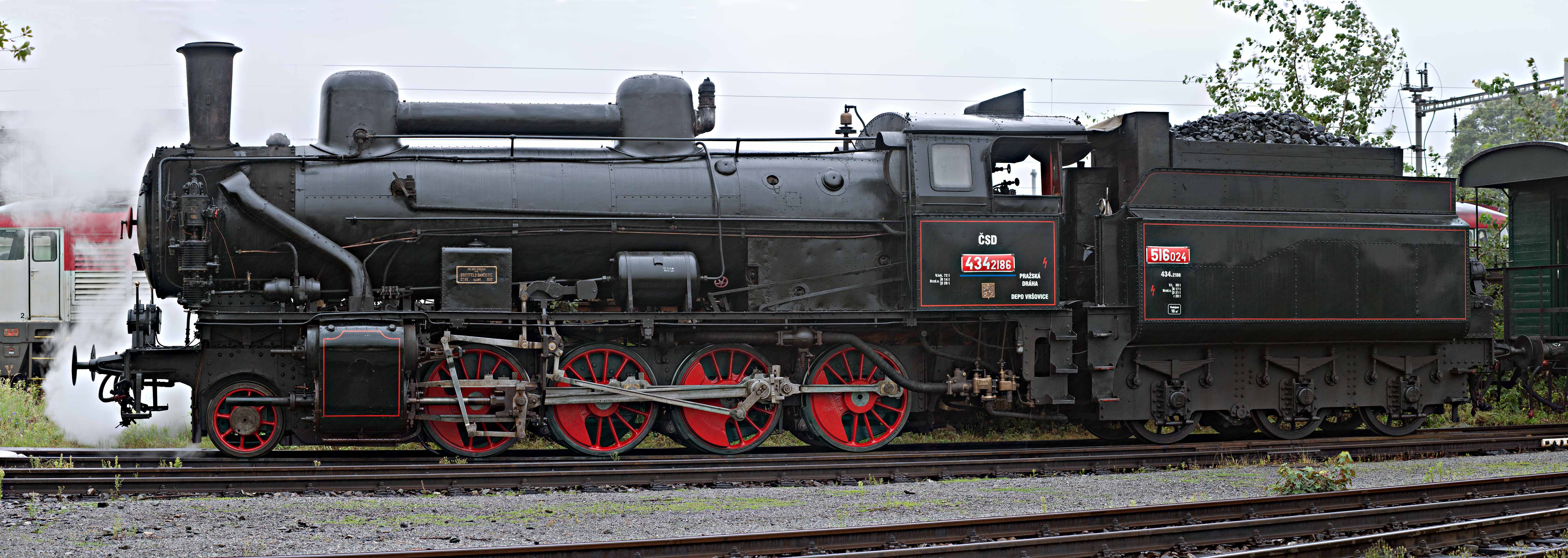 Před rokem 2010 jsem se zabýval projektem "Přežily rok 2000", jednalo se o portréty dochovaných parních lokomotiv. Mám fotku vršovické 434.2186, která byla pořízena za deště, takže ji pruhy od padajících kapek poněkud znehodnotily. Myslím, že ji můžu uvolnit pro modeláře. Musel jsem ji zmenšit na čtvtinu a hodně zkomprimovat, aby se to propasírovalo do fóra. Ale když si ji prohlédnete v plném rozlišení dá se tam ještě najít hodně detailů.