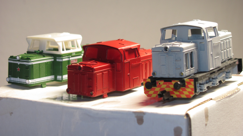 - Srovnání 3D tisku s původním Tilligem. Vlevo Tillig, červená 4. série a na pojezdu 1. série