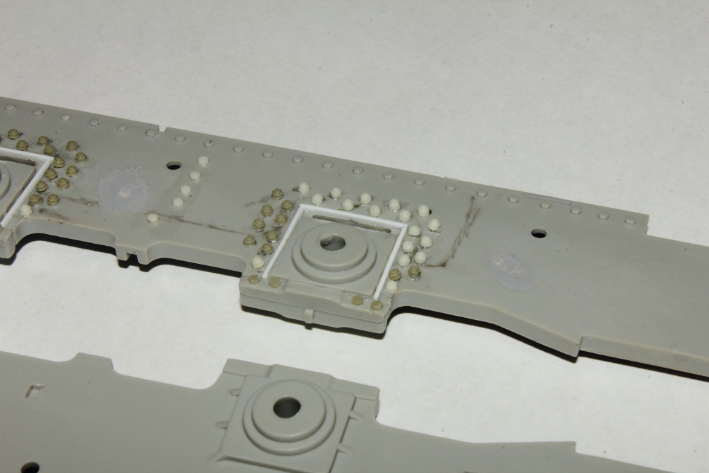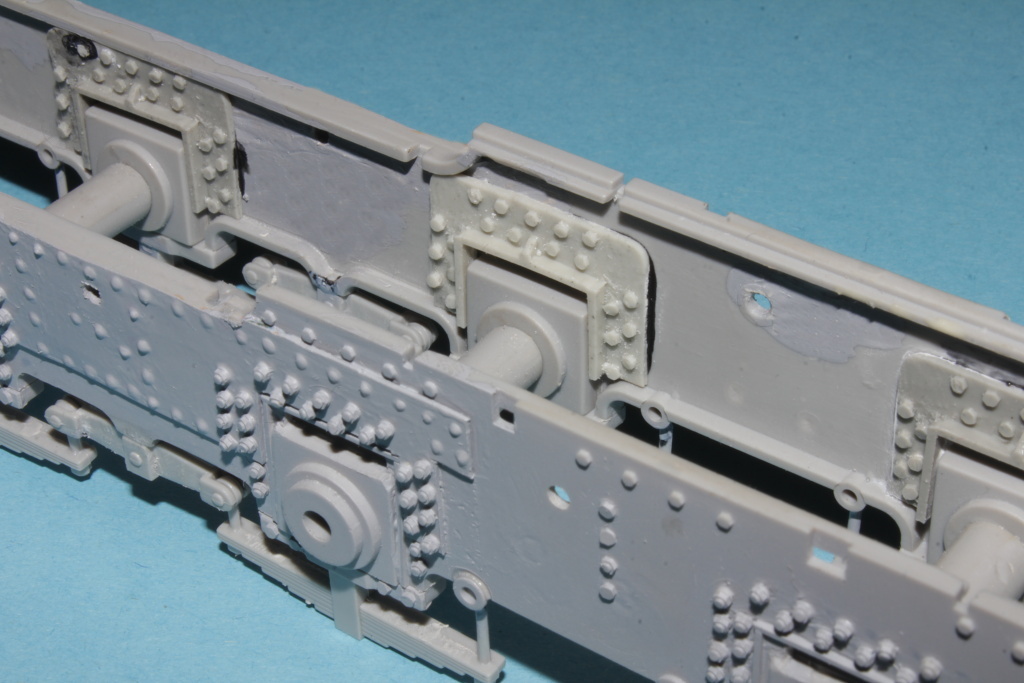 Mezi rámy je třeba doplnit nápravy dolepit ložiska.Tady se ve stavebnici trefily a nic se nemuselo uravovat až na případné tmelení.