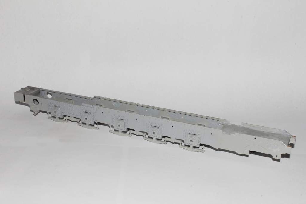 Na rám jse doplnil všechny šrouby,které se týkají náprav a jejich vedení.Rámy jsem slepil a doplnil nápravy.Následovalo nalepení vypružení a vahadlového systému.