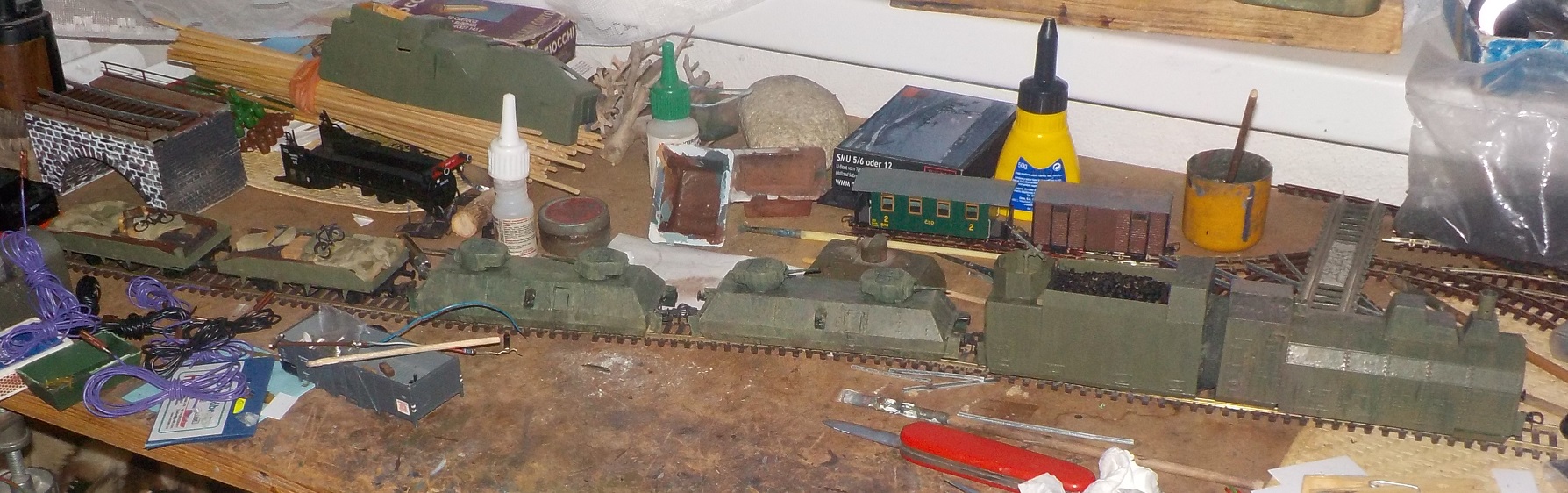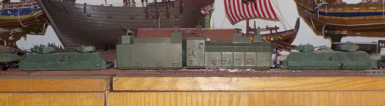 Jinak ještě pro šikovné žáčky - lokomotivu mohou opancéřovat a nakašírovat z vhodného vagónu ještě jeden pancéřovaný tendr, který se v Rusku zapřahal před ní. Evidentně vycházeli z typů BP-42 a BP-44. Zajímavostí je, že Němci zjednodušené pancéřování lokomotiv uvedených typů vlaků okopírovali z ukořistěné lokomotivy sovětského obrněného vlaku "Za Stalina". Co se týká vagónu s naloženým tankem, tak tam bývaly na vagón dodatečně doplňované bočnice buďto z pancéřových desek, nabo z betonových panelů. Délka bočnic odpovídala zhruba délce tanku a výška bylůa volená tak, aby bočnice chránily podvozek a boky. Více názorně zde: http://www.databazeknih.cz/knihy/nemeck ... aky-195935