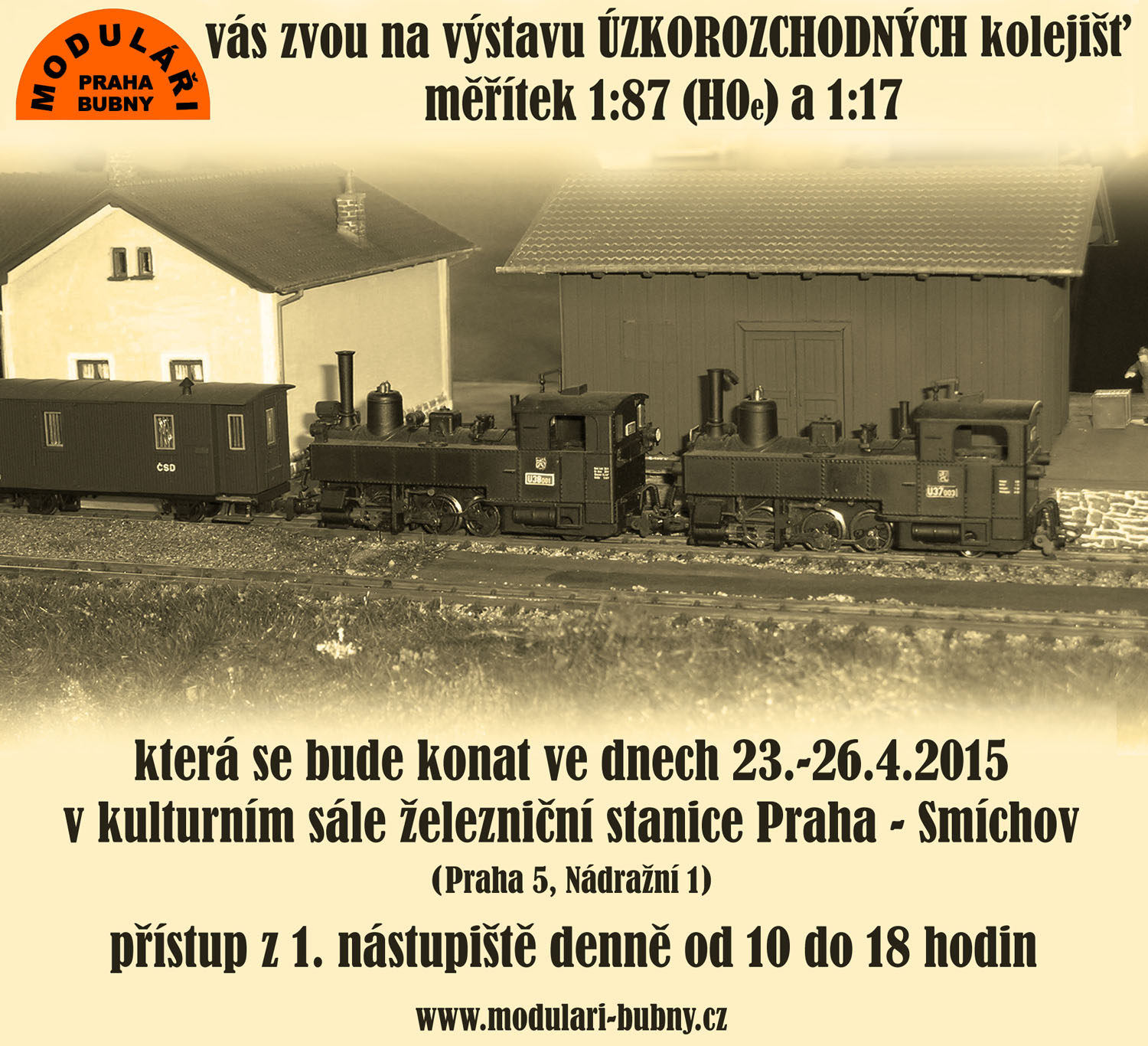 Ahoj! Reaguji tady na možná již zapadlé téma z října 2014. Moduláři v Bubnech nejen žijí, ale staví další moduly a na konci roku 2014 dokončili úzkorozchodnou vratnou smyčku. Díky tomu bude možné letos v dubnu uspořádat v Praze výstavu úzkorozchodného modulového kolejiště HOe v délce přes 20 metrů. Výstava se uskuteční v kulturním sále nádraží Praha Smíchov od 23.4. do 26.4.2015 a bude také vystavena úzká 1:17 na rozchodu 45 mm a kresby s železniční tematikou. Více na www.modulari-bubny.cz , Zdeněk