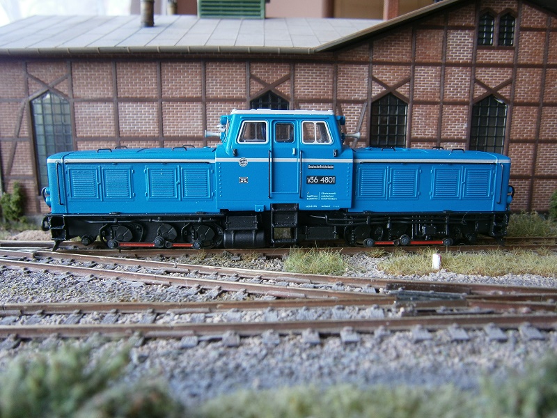 V letech 1960-61 lokomotivka VEB lokomotivbau Karl Marx Babelsberg vyrobila dva prototipové stroje V 36 4801 a 4802, hydrodinamický přenos výkonu, max. rychlost 30 km/h. Plánována 100 kusová série, která měla nahradit parní provoz se nikdy neuskutečnila. Soudruzi z NDR udělali řadu chyb při konstrukci a navíc stroje byly těžké , povolený nápravový tlak překračovaly o necelé 2 tuny, takže použití na většině úzkých tratích nebylo možné. Již během roku 1963 byli oba stroje odstaveny a poté rozloženy. Tolik malinko z historie. Náš model zatím víc prostál v depu, kde zámečníci s mnohaletou praxí pří opravách parních lokomotiv musí denně řešit nekončící řadu technických problémů s novou technikou.